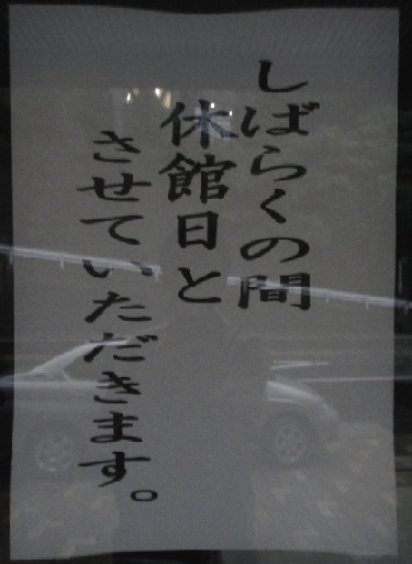 2011年3月閉館、2011年7月1日破産決定です。玄関に2011年7月1日破産の張り紙がありました。