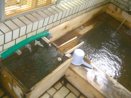 湯舟は2人用に仕切られていて、2人で満員。空くまで待ちました。