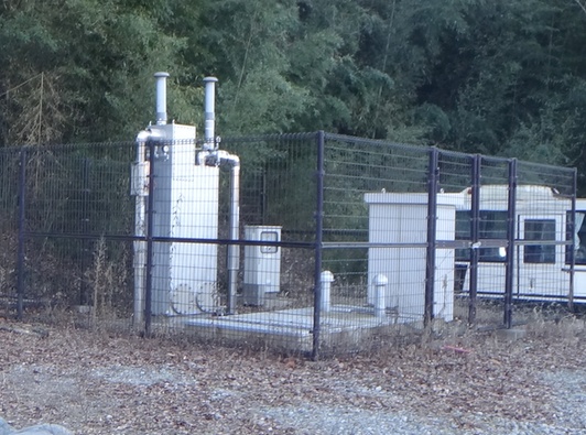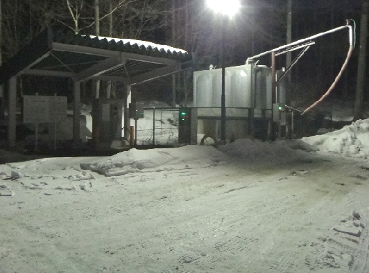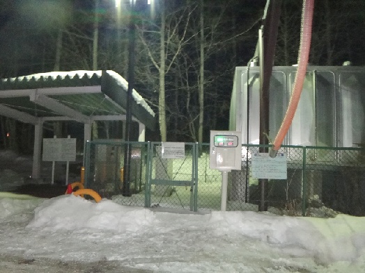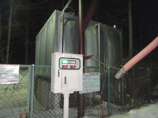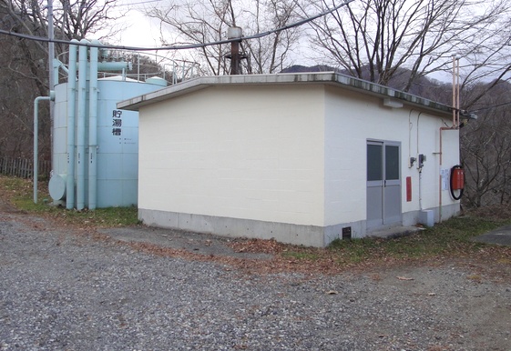 廃校となった川俣中学校の片隅に「川俣湖温泉配湯所」があります。グランドはヘリポートとなっています。