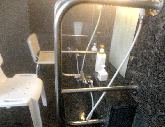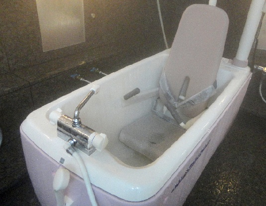 脱衣所のトイレはカーテンとなったり、浴室内には介助浴槽ができたり、介護施設として改装されています。