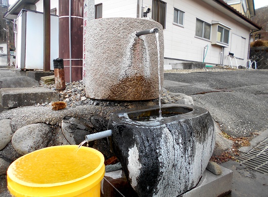 湯口から道路排水溝に「市有川俣湖源泉」がじゃばじゃば掛け捨てしています。