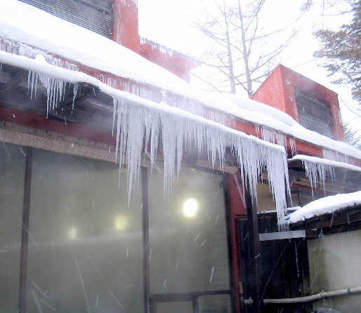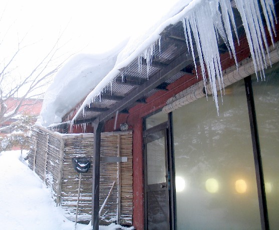 冬は屋根から連なるつららがすごかったです。夜はライトアップされます。