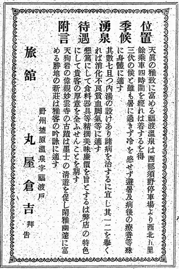 文化11(1814)年には、5軒の旅館(那須屋、塩の湯屋、和泉屋、丸屋、升屋)がパンフレットを作り、