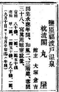「塩原福渡戸温泉 枕流閣 丸屋」は「開業承応年間」と記載されています。
