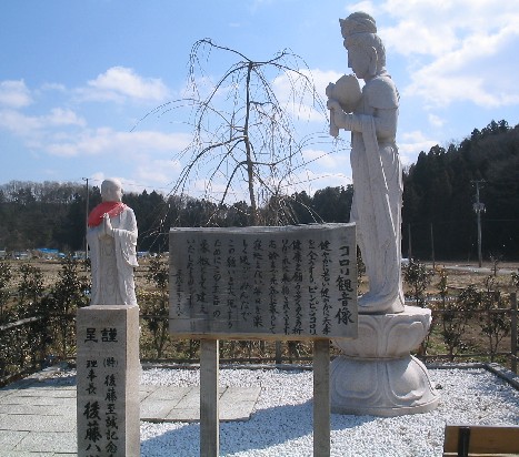 駐車場では「コロリ観音像」がお出迎え。福祉農園やリハビリ運動場まであります。